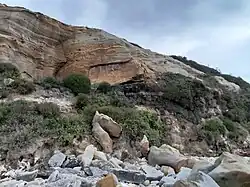 Coal seam outcrop at Bell's Point, at the northern end of Austinmer Beach. This is the coal seam noted by George Bass in 1797.