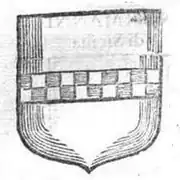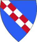 ShieldAzure, a bend chequy of Gules and Argent.[3]