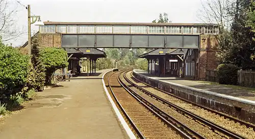 Cobham & Stoke d'Abernon railway station is in the village of Stoke d'Abernon in Surrey, England and also serves the nearby town of Cobham. It is 18 miles 63 chains (30.2 km) down the line from London Waterloo.