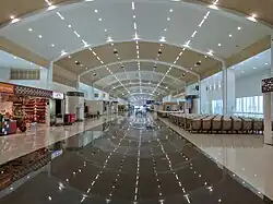 Work on the third phase was intended to accommodate 5 million passenger movements annually and was started in 2007.[21] The third phase involved the commissioning of a central block, connecting the domestic and international terminals and enlarging the airside area to accommodate more gates and waiting areas along with increased shopping areas. This increased the built-up area by another 29,700 m2 (320,000 sq ft).[22] The airside area of the international arrivals and departures blocks were integrated and glass walls were installed to allow for more natural light. The runway was re-surfaced in 2008.[23] The number of parking areas was increased from 15 to 24, including three dedicated for cargo airlines. The third phase also completed the expansion of the cargo village and a second aircraft taxiway to the MRO facility.[24][25]