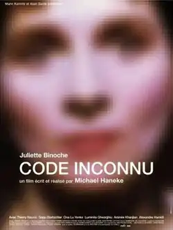 Code Unknown (French: Code inconnu : Récit incomplet de divers voyages, lit.'Unknown code: Incomplete account of various travels') is a 2000 film directed by Michael Haneke. Most of the story occurs in Paris, France, where the fates of several characters intersect and connect.