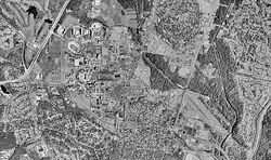 The neighborhoods that were part of the initial incorporation of the city in 1945 (Calvert Hills, Old Town, Lakeland, Berwyn, Branchville, Oak Springs, Daniel's Park, and Hollywood) plus Sunnyside lie in between the Washington-Baltimore CSX railway tracks and Route 1/Baltimore Avenue.[45] West of Baltimore Avenue lie Lord Calvert Manor, College Park Woods, Crystal Springs, Acerdale (University View), Autoville, Cherry Hill, and Camden. East of the CSX tracks lie College Park Estates and Yarrow.
