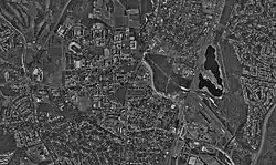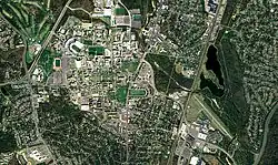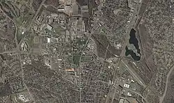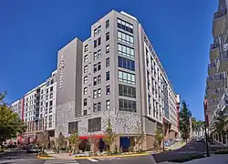By the turn of the 21st century, College Park began experiencing significant development pressure. Both students and city residents acknowledged the city's lack of amenities and poor sense of place. In 2002, the city and county passed the Route 1 Sector Plan, which allowed and encouraged mixed use development along College Park's main roadway.[23] In July 2006, a group of students created Rethink College Park—a community group providing a website to share information about development and to encourage public dialogue. Early mixed-used projects along Baltimore Avenue included the View I (2006) and II (2010), Mazza Grandmarc (2010), and the Varsity (2011). In 2013 the College Park City-University Partnership—a nonprofit funded by the University of Maryland and the city of College Park—launched the College Park Academy aiming to improve the perception of local public schools.[24]