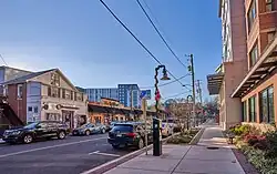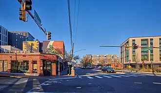 These neighborhoods are primarily residential. They exhibit a variety of architectural styles including Queen Anne and Colonial Revival, and, in later constructions, American Foursquare, Cape Cod, and bungalow.[46] Commercial activity is concentrated along Baltimore Avenue, Greenbelt Road, and Berwyn Road. Starting in 2017 commercial development also started expanding along Knox Road, Hartwick Road, and Calvert Road.[47]