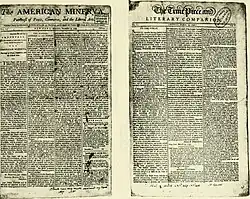 The paper had its origins in the American Minerva, founded in 1793 by Noah Webster. Its first edition was published on December 9, 1793.[2] It went through a few name changes in its first few years before settling on the Commercial Advertiser in September 1797. Webster's involvement with the paper ended in 1803,[3] and Zachariah Lewis replaced him as publisher.[4] Under Webster and Lewis, the paper generally was a supporter of the Federalists.[5]