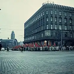 Labour Day march of the Communist Party of Finland on Kaivokatu in Helsinki on May 1, 1960