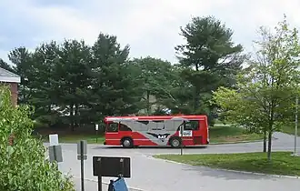 ![]() A Community Connector bus rolls through the University of Maine campus. | |