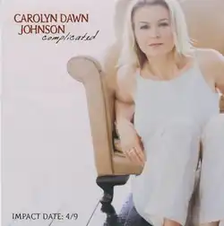 "Complicated" is a song co-written and recorded by Canadian country music singer Carolyn Dawn Johnson. It was released in April 2001 the second single from her debut album Room with a View. The song was also her second entry on two U.S. singles charts, peaking at number 5 on Billboard Hot Country Singles & Tracks (now Hot Country Songs) and number 59 on the Billboard Hot 100. It also reached number 15 on that magazine's Hot Adult Contemporary Tracks chart. The song was written by Johnson and Shaye Smith.