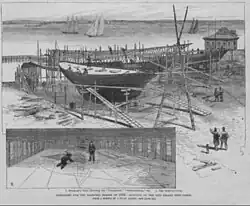 Constellation was the largest steel schooner when completed, having been designed by the yacht designer Edward Burgess and launched in 1889. She was built at the Piepgras Shipyard on City Island in the Town of Pelham on Long Island, New York.[1] It was built for yachtsman Edwin D. Morgan III, who was a commodore of the New York Yacht Club, and grandson of New York Governor and state senator Edwin D. Morgan.[2][3] The vessel remained in service on the United States East Coast at Marblehead, Massachusetts, until 1941 when the schooner was taken out of service and scrapped for its metal to aid the war effort.