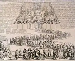 The Convention of Royal Burghs, more fully termed the Convention of the Royal Burghs of Scotland, was a representative assembly which protected the privileges and pursued the interests of Scotland’s principal trading towns, the royal burghs, from the middle of the 15th century to the second half of the 20th century.[1] It evolved as a forum in which burgh delegates, termed "commissioners", could "consult together and take common action in matters concerning their common welfare"[2] before and during the sittings of parliament.[3] An exclusively merchant body, it was essentially a parliament which "declared the law of the burghs" just as the Scottish Parliament "declared the law of the land".[4] The Convention expanded over time by admitting lesser burghs to its membership;[5] and by the 16th century had grown in influence to the extent that "it was listened to rather than directed by the government".[6] Though still known as the "convention of royal burghs", it referred to itself from the late 17th century onwards as simply the "convention of burghs", as by then membership was no longer restricted exclusively to royal burghs and commissioners from all types of burgh were represented in parliament.[7]