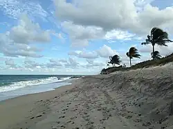 The park, which is almost 15 acres, includes approximately 2,610 feet of beach frontage (most of which is guarded) and 600 feet of intracoastal waterway frontage.[2] The most prominent feature of the beach is the natural limestone, which is part of the Atlantic Coastal Ridge.[3] These rocks, as well as the coral reefs, are inhabited by marine wildlife, including fish, sea turtles, eels, sharks and marine worms.[1][3]