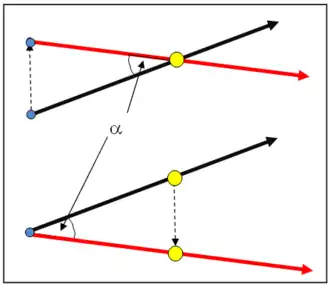 The concept hinges on the geometry of a triangle formed between the Earth at two different points in its orbit at one end and a star at the other. The parallax angle is half the angle (α) formed at the star between those two lines of sight. The closer the star is to the observer, the larger the angle would be.