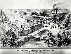 Cove Island became separated from the mainland after a flour watermill was expanded by its owners in the late 1700s. Ownership of the land transferred to Henry J. Sanford in the late 1830s, who founded Stamford Manufacturing Co. in 1844, which operated the Cove's mills and manufactured dye extracts, bleached minerals, licorice. The factory on Cove Island stayed in business until 1919, when it burned down, with the Stamford Advocate calling it the most damaging fire in city history.