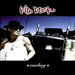 "Cowboy" is a song by Kid Rock from his album Devil Without a Cause, and his first single to chart on the Billboard Hot 100, peaking at number 82, while reaching number 10 on the Mainstream Rock charts. With its lyrics about pimping and traveling to California, the song is considered to be one of Kid Rock's best works, and has been claimed as influencing modern country music,[1][2][3][4] and as the first country rap song.[2]