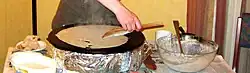 Crêpes being made on a billig