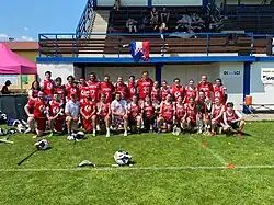 In 2018, Croatian national lacrosse team competed in its first official international tournament, 2018 World Lacrosse Championship.[4] In the tournament, Croatia scored its first win against Chinese Taipei in first play-in game of a lower bracket, after losing both games in group stages against New Zealand and Spain. After further loses against Hungary, Bermuda and China, victory against Turkey ensured the 43rd place in their first international tournament.[5] The next international tournament appearance was supposed to happen at 2020 European Lacrosse Championship, however due to COVID-19 pandemic, the tournament was postponed and eventually in 2022 replaced with European Lacrosse Qualifiers for the 2023 World Lacrosse Championship.[6] In European Qualifiers, Croatian team started strong with a 7–5 victory against Hungary, however a crushing 1–9 defeat against Austria lowered the qualifying chances drastically. Croatian team defeated Slovenia 14–7 before ultimately losing to Switzerland 7–8 and Italy 7–12 to finish 4th in a group of 6 and missing out on qualifying to 2023 World Lacrosse Championship.[7] In 2023, Croatian men's lacrosse team participated in Lacrosse Prague Cup, finishing 3rd.[8]