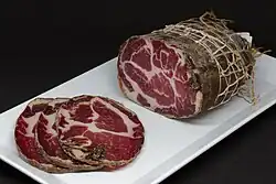 Coppa pork cold cut made from the dry-cured muscle
