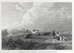 Gilli Davies notes that although some of the recipes in First Principles of Good Cookery may have a Welsh origin, others originated from Lincolnshire where Lady Llanover was brought up.[4] Monmouthshire has three main agricultural areas. The central and eastern part of the county is made up of the large valleys of the rivers Severn, Wye, and Usk and the land in this part of the county is fertile and of good quality with gently undulating land suitable for market gardens and vineyards. The southern part of the county is bounded by the Bristol Channel and includes areas of moorland and marsh, such as Wentlooge and Caldicot. This area was once owned by the monks of Goldcliff Priory who drained the land and built seawalls to prevent the sea flooding the land. The northern and western part of the county is made up of uplands with shallow soils of low nutrient value which are suitable for hill farming. This area includes the valleys of the rivers Ebbw and Sirhowy to the west and the Black Mountains to the north.[5][6]