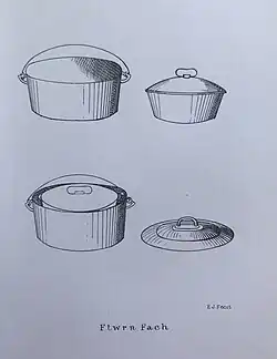Illustration of a Welsh cooking pot called a Ffwrn Fach, from the book “The First Principles of Good Cookery“ by Lady Llanover