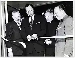 The opening of D'Agostino Brothers on 20th Street (1950). Every store opened by the family was first blessed by a Catholic priest. Left to right: Patsy D'Agostino, city official, priest, Nick D'Agostino Sr.