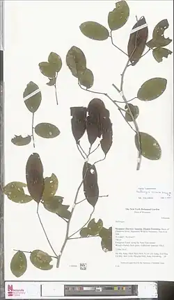 Dalbergia rimosa[2][3][4][5] is a species of liana (or treelet), with the Vietnamese name trắc giây[6] or trắc dây. The synonym Dalbergia discolor, with the Vietnamese name trắc biến màu,[6] is no longer recognised.[7] The genus Dalbergia is placed in the subfamily Faboideae and tribe Dalbergieae.[8]
