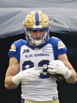 Schoen was signed by the Blue Bombers prior to the start of the 2022 CFL season.[11] In the week five away game against the BC Lions, Schoen had his first 100 yard game and also his first two touchdown game as a professional.[12] As a result he was named a top performer of the week by the CFL.[12] Schoen continued his strong rookie season, he finished the season in the month of October and was named a top performer of the month with five touchdowns and 323 yards receiving.[13] Schoen finished the season leading the league in receiving yards and receiving touchdowns, as a result he was the West Division's nominee for the league's Most Outstanding Rookie Award.[14] On November 17, 2022, Schoen was declared the CFL's Most Outstanding Rookie for the 2022 Season.[15] Following his rookie season in the CFL, Schoen had NFL workouts for the Minnesota Vikings, Arizona Cardinals, and Cincinnati Bengals.[16]