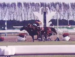 Dance Partner (nearest camera) finishing second to Silk Justice | |