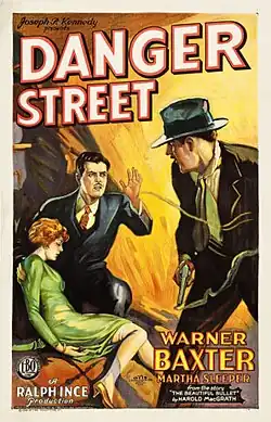 Danger Street is a 1928 American silent drama film directed by Ralph Ince and starring Warner Baxter, Martha Sleeper and Duke Martin.[1]
