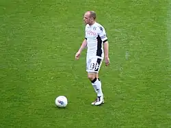 Fulham took over Murphy's Tottenham contract on 31 August 2007.[20] He cemented himself as a regular starter, kept his place in the team throughout the season and scored six goals in 43 matches. One goal, a rare header scored on 11 May 2008, gave Fulham a 1–0 win away at Portsmouth and ensured their Premier League survival.[21] Following the match, Murphy highlighted manager Roy Hodgson's "key role" in the team's avoiding relegation.[22] Murphy signed a new one-year contract, with an option for a further year, at the end of the season,[23] and was appointed club captain for the 2008–09 season.[24]