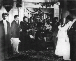 Kawānanakoa, second from left, Liliuokalani, center, during boycott of annexation ceremony.