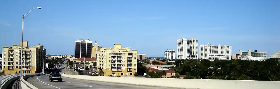 The city of Daytona Beach made national headlines in 2005, when it designated the several–mile radius around Main Street on the barrier island portion of the city as a blighted area and has targeted it for redevelopment by private developers. This follows the Supreme Court decision of the eminent domain case in Kelo v. City of New London, which upheld the right of municipalities to use eminent domain to take private property for redevelopment by private entities.[16]