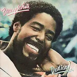 Dedicated is Barry White's fifteenth studio album, released in March 1983. White's popularity and record sales were at an all-time low and, as a consequence, his relationship with CBS Records had soured. Dedicated and his album Rise with the Love Unlimited Orchestra, released around the same time, sold poorly and failed to chart. All the tracks were recorded at White's R.I.S.E. studio in the grounds of Sherman Oaks, with White and Jack Perry playing all instruments of the rhythm section themselves. Gene Page added the strings. White dedicated the album to his mother, Sadie Marie Carter.