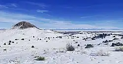 Winter time on the Pronghorn Trail just south of Del Norte, looking east towards 'D' Mountain, the Sangres, and the Sand Dunes.