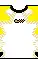 Deportivo Táchira's shirt has black and yellow vertical stripes, with black shorts and socks.