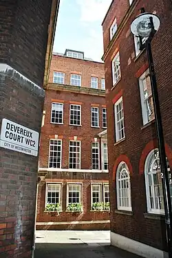- ^ "Devereux Court" in Christopher Hibbert; Ben Weinreb; John Keay; Julia Keay (2008). The London Encyclopaedia (3rd ed.). London: Pan Macmillan. p. 235. ISBN 978-0-230-73878-2.
