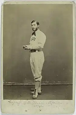 John Dickson "Dick" McBride (June 14, 1847—January 20, 1916) was an American Major League Baseball player from Philadelphia, Pennsylvania, who was the star pitcher and the player-manager for the Philadelphia Athletics of the National Association from 1871 through most of 1875 until Cap Anson took over as player-manager for the remaining eight games of the season. He had a pitching record of 149 wins and 74 losses during that period. In 1871, he went 18-5 and led Philadelphia to the NA championship. McBride finished his major league career in 1876 when he was signed by the Boston Red Stockings of the National League after the Association failed. He had a record of 0-4 before his career came to an end. McBride died in Philadelphia at the age of 70, and is interred at Lawnview Cemetery in Rockledge, Pennsylvania.[1]