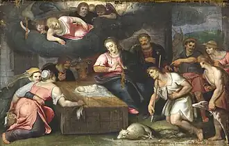 Diego de Leyva (c. 1580–1637) was a Spanish painter. He was born at Haro in La Rioja. He is supposed to have spent his youth at Rome, and returned to Spain a painter, and settled at Burgos. In 1628 he was commissioned by the Chapter of Burgos to paint the portraits of certain dignitaries for the chapel of St. Catalina in the cathedral, and for the chapel of the Virgin he painted a picture of the Presentation.