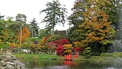 In the Japanese garden, where there is a possibility to calm down, leads a path to a pond, the home to the Koi carp, and ends at the home of the Japanese crane.