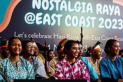 The art of dikir barat developed in the northeastern Malay Peninsula, specifically in Patani, Kelantan and Terengganu under the influence of the Patani Kingdom;[8] the adjective barat ('west') indicated its possible origins from Siam west of the kingdom.[9] Singapore's location on the Malacca and Singapore straits further south historically lay in direct contact with the Johor and Riau-Lingga sultanates shaping its Malay population's own distinct artistic and cultural traditions.[10][11] Despite this historical divergence, dikir barat was introduced to Singapore’s Malay community and gradually adapted to its new environment.[11] Over time, Dikir Barat Singapura has undergone stylistic and thematic transformations, differentiating it from its traditional forms in the Malay Peninsula. Performances often exhibit faster tempos and a wider thematic range, reflecting its integration into Singapore’s cultural landscape.[11]