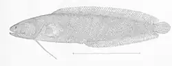 Dinematichthyini is a tribe of viviparous brotulas, which is conventionally placed within the subfamily Brosmophycinae. They are differentiated from the other tribe within that subfamily, the Brosmophycinae, by having a single pair of ossified genital claspers, having an absence or greatly reduced scales on the head and having the posterior end of the maxillary bone showing a small amount of vertical expansion.[1] A review of the viviparous brotulas carried out in 2016 elevated the tribe to a family, the Dinematichthyidae.[2]