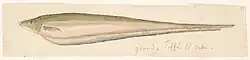 The fish is covered in cycloid scales and typically has 4 to 5 gills with 4 to 11 small gill rakers.[5] The body lacks any dark bands running laterally down the body, something present in Japigny kirschbaum, another species of the Sternopygidae.[5] The fish also typically has 13–14 precaudal vertebrae, differing significantly from the 20–26 precaudal vertebrae present in the Sternopygus genus.[5]