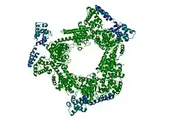 - ^ a b c d e f Bailey S, Eliason WK, Steitz TA (19 October 2007). "Structure of Hexameric DnaB Helicase and Its complex with a Domain of DnaG Primase". Science. 318 (5849): 459–63. Bibcode:2007Sci...318..459B. doi:10.1126/science.1147353. PMID 17947583.