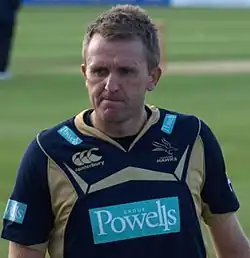 Making his début in first-class cricket for Derbyshire in 1990, he was selected to play for England in 1992, aged 21. He made 69 appearances for England from 1992 to 2002. Cork played for Derbyshire for 13 years, before leaving under controversial circumstances to join Lancashire in 2004. Leaving Lancashire after the 2008 season, Cork joined Hampshire, who he played for from 2009 to 2011, acting as captain for much of the 2010 and 2011 seasons.[2] While at Hampshire he won the 2009 Friends Provident Trophy, and captained the county to victory in the 2010 Friends Provident t20. He was released by Hampshire at the end of the 2011 season, shortly thereafter he announced his retirement on Sky Sports News on 22 September 2011. His popular nickname is "Corky".