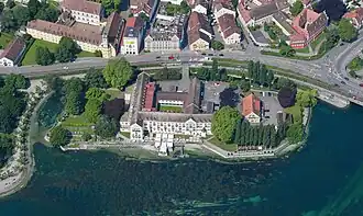 In 1507 Maximilian I organized celebrations in the garden on the island during the Diet of Constance.[15] From 1528 to 1549, the convent was used by the city of Constance as a temporary hospital. It was then returned to the friars. In 1633, during the Thirty Years' War, the Swedish fleet attacked the island.[15]