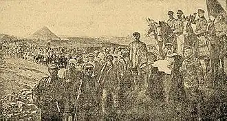 After the victory of Semyon Budyonny's cavalry at Voronezh and Kastornoye, in October and November, and then the recapture of the Ukrainian Soviet capital of Kharkiv, on 11 December, the Red Army advanced rapidly south.[4] Until the fall of Kharkiv, the Whites had retreated in an organized and orderly manner, but after losing this city, their retreat turned into a disorderly escape, the more so as the wounded and those suffering from typhus were moving along with the soldiers.[5] On 16 December, the Red Army reached the line of Kupiansk-Svatove-Bilolutsk.[3]