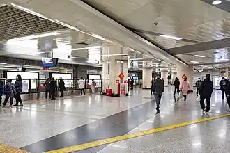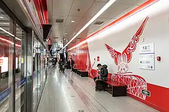 Dongzhimen station[1] (simplified Chinese: 东直门站; traditional Chinese: 東直門站; pinyin: Dōngzhímén zhàn) is an interchange station for Line 2, Line 13 and the Capital Airport Express of the Beijing Subway.