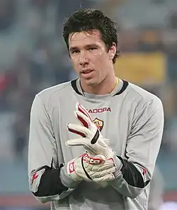 His contract was renewed on 13 April 2006, now worth €1.25 million a season (in gross).[7] In his second season with Roma, he became one of the best goalkeepers of the Serie A.[8] He won the Coppa Italia twice in 2007 and 2008, and also finished as the runner-up of Serie A in 2007 and 2008.