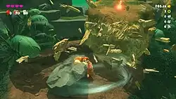 The player completes missions, solves puzzles, and fights enemies to collect Banandium Gems.[6][4] Banandium Gems function similarly to Odyssey's Power Moons and are obtained by progressing through the story or found through exploration.[6] While exploring, the player discovers secluded areas where they must complete challenges including platforming, solving puzzles, defeating enemies within a time limit, and mining for gold.[6][16] They are rewarded Banandium Gems or gold upon completion.[6] Some areas contain side-scrolling sections,[17] which pay homage to the Donkey Kong Country games,[8][18] and minecarts.[12]