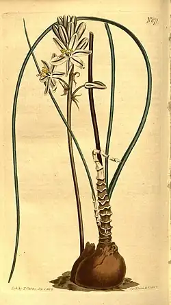 Drimia exuviata ("Gifbol") is a species of flowering plant in the family Asparagaceae, subfamily Scilloideae, indigenous to the south-western parts of South Africa.