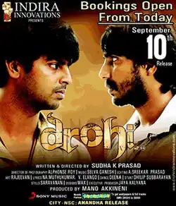 Drohi (transl. Traitor) is a 2010 Indian Tamil-language crime action film written and directed by Sudha Kongara Prasad in her Tamil debut.[1] The film stars Srikanth, Vishnu Vishal, Poorna and Poonam Bajwa in lead roles. The music was composed by V. Selvaganesh with cinematography by Alphonse Roy and editing by A. Sreekar Prasad. The film was released on 10 September 2010.